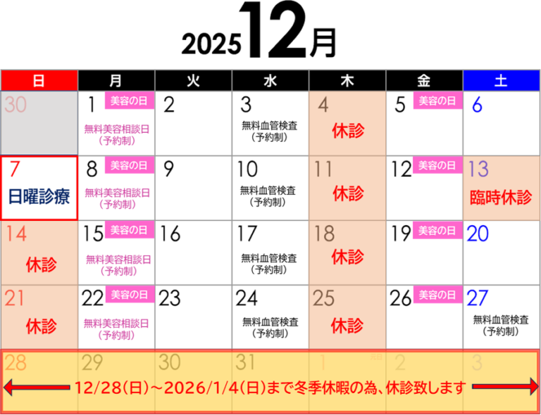 - 【年末年始休診のお知らせ】12月28日(日)~1月4日(日) 2025年10月20日